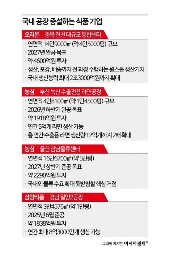 오리온·농심·삼양 등 국내 생산기지 확대