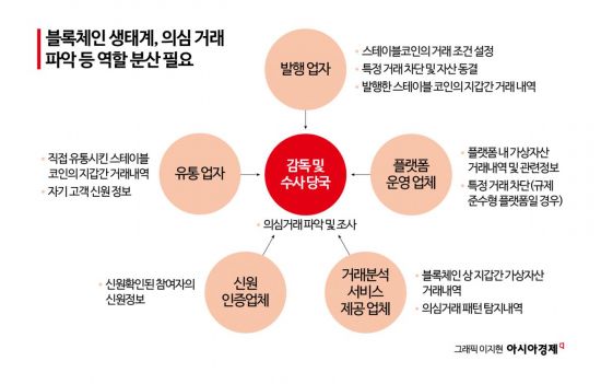 이병목 한은 금융경제국장은 "퍼블릭 블록체인 플랫폼에서 의심 거래를 보고하고 의심스러운 활동에 대한 총괄적인 모니터링을 주도적으로 수행하는 주체가 필요하다"며 "의심 거래 관련 이용자의 신원 파악 및 위험평가, 거래 차단 등의 업무는 블록체인 플랫폼이 독자적으로 할 수 없고 발행자 및 유통업자, 신원 인증업체, 수사당국 등 각기 다른 역할을 담당하는 여러 주체들과의 협력이 필수적"이라고 강조했다.