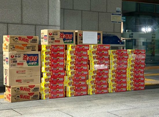이날 컵라면을 기부한 '수원 광교 주민'은 지난해 11월에도 산불 감시 담당 공직자에게 전달해달라며 컵라면 33상자와 편지를 두고 간 것으로 알려졌다. 지난 7년 동안 수원시청, 경기도청, 119안전센터, 보건소 등에 기부한 컵라면만 1000상자가 넘는 것으로 파악됐다.