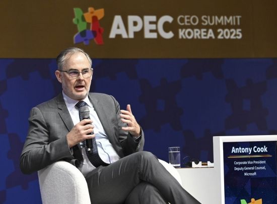 앤터니 쿡 마이크로소프트(MS) 부사장은 이날 경주 예술의전당 화랑홀에서 진행된 CEO 서밋 세션에서 '책임 있는 AI 확산과 확장을 위한 공공-민간 협력'을 주제로 연설했다. 그는 이날 "시장에 대한 책임 의식을 바탕으로 모두가 함께 성장하는 환경을 만들겠다"고 강조했다.