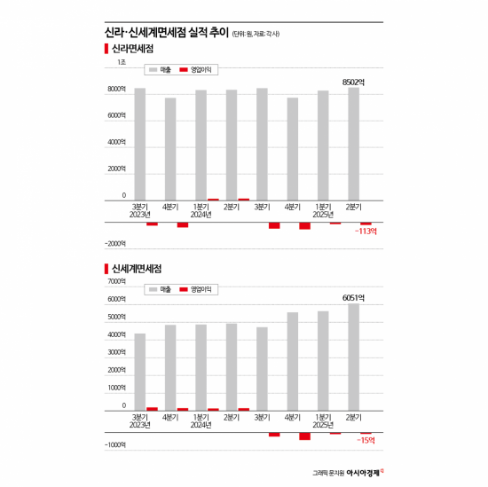 이 때문에 인천공항 면세점 운영권을 따낸 뒤 이들 사업자의 실적도 악화했다. 신라면세점은 지난해 3분기 영업손실 387억원을 기록한 뒤 올해 2분기까지 4개 분기 연속으로 적자를 이어갔고, 신세계면세점도 지난해 3분기 영업손실 162억원 이후 올해 2분기까지 줄곧 적자다. 사업권 낙찰 이후 1년 만에 '승자의 저주' 우려가 현실화한 것이다.