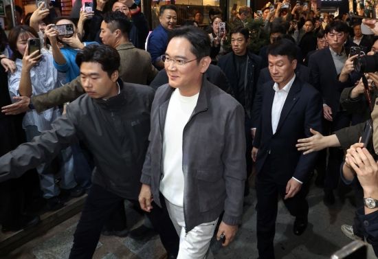 이재용 삼성전자 회장이 30일 서울 삼성동에서 예정된 치맥회동 장소로 이동하고 있다. 2025.10.30 조용준 기자