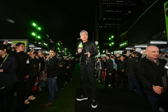 젠슨 황 엔비디아 최고경영자(CEO)가 30일 저녁 서울 강남구 코엑스에서 열린 엔비디아 그래픽카드(GPU) ‘지포스’의 한국 출시 25주년 행사에 참석해 시민들과 대화를 나누고 있다.