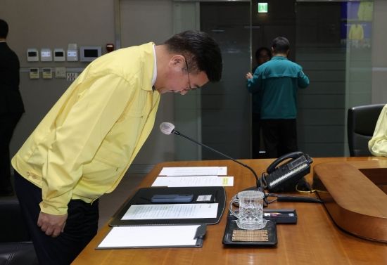 윤호중 행정안전부 장관이 31일 서울 종로구 정부서울청사에서 열린 국정자원 행정정보시스템 화재 관련 중앙재난안전대책본부회의에 참석, 인사하고 있다.