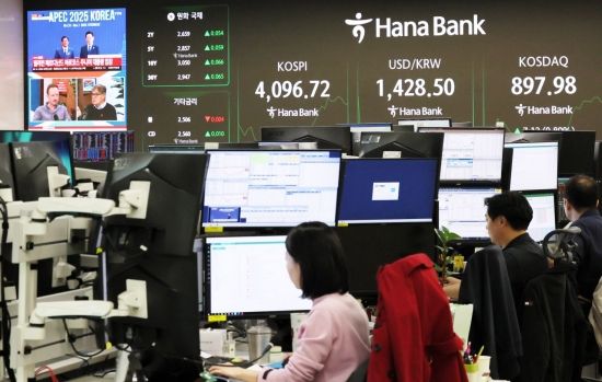 지난달 31일 코스피 지수가 하락 출발 후 반등에 성공하면서 최고치 경신에 다시 한번 도전하고 있다. 서울 중구 하나은행 딜링룸 현황판에 각종 지수와 환율이 표시되고 있다. 2025.10.31 윤동주 기자
