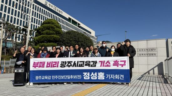 정 전 지부장은 "광주시교육청 감사관 채용 과정에서 드러난 측근 특혜와 인사 비리 의혹으로 시민과 교직사회가 깊은 실망을 했다"며 "이미 인사담당 공무원이 실형을 선고받았음에도 핵심 인사에 대한 수사와 기소가 지지부진하다"고 지적했다.