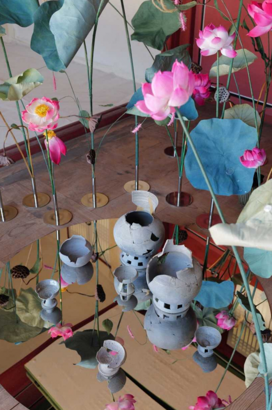 섬유공예가 김은하는 연꽃을 형상화한 섬유 공예품을 해양 보관소 청자 위에서 피어나듯 연출하고, 한국전통문화대학교는 결손 부위를 석고로 복원하고 전통 회화로 새로운 해석을 부여한다.