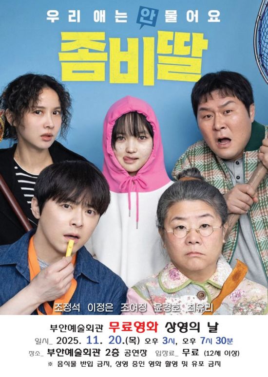 전북 부안군은 오는 20일 부안예술회관 공연장에서 영화 '좀비딸'을 무료로 상영한다고 5일 밝혔다.