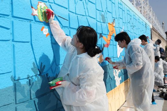 석유공사는 5일 울산 강양항 인근 어촌마을에서 '어촌에 희망을 입히는 벽화 그리기' 봉사를 펼쳤다.