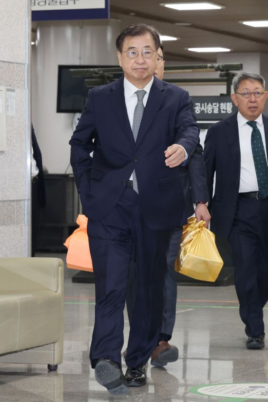 2020년 9월 서해에서 발생한 공무원 피격 사건을 은폐하려 한 혐의로 재판에 넘겨진 서훈 전 청와대 국가안보실장이 5일 서울중앙지법에서 열린 결심 공판에 출석하고 있다. 연합뉴스