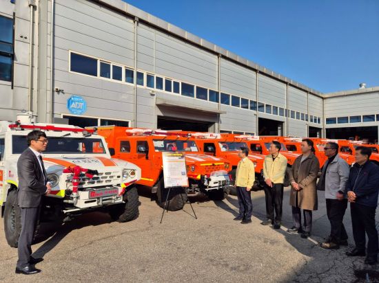 세 기관은 전날 경기도 화성시 바이오밸리 소재 연구기관에서 '대형 산불 진화차량' 긴급대응연구를 위한 현장 착수보고회를 공동으로 개최했다.