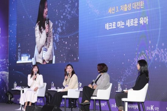 패널들은 육아 테크 기반의 서비스가 저출생 문제를 해결하는 데에도 도움이 될 수 있다고 한목소리로 말했다. 인공지능(AI) 기반의 영유아 발달 맞춤 놀이 서비스 '피카비'를 선보인 허 대표는 "아이를 키우는 부모를 봤을 때 공통으로 불안이 많고 경쟁과 비교도 많다"며 "(다양한 서비스로) 이를 낮추고 자신감을 줄 수 있다면 육아에 대한 행복한 인식을 줄 수 있을 것"이라고 말했다. 또 "(불안을 낮추는 데 기여하는) 브랜드가 많아진다면 육아하기 좋은 사회가 만들어질 수 있다"고 했다.