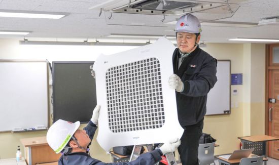LG전자가 2026학년도 대학수학능력시험을 앞두고 수험생들이 쾌적한 환경에서 시험을 치를 수 있도록 수능 시험장의 냉난방 시스템에어컨을 사전 점검하고 있다.