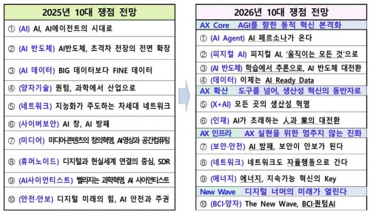 올해 인공지능(AI) 기술이 전 산업과 사회에 보편화되는 잠재력을 보여줬다면, 내년에는 모든 곳에 AI 내재화로 새로운 생산성 혁명을 이끌 'AX 2.0'으로 대전환이 시작될 거란 전망이 나왔다.