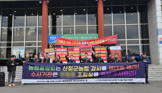 노조는 "농협중앙회는 지역농협 감사제도 개선, 임원 선거 부적정성, 조합장 불법행위 적발 시 해당 임원 직무 정지, 위법 사항 발생 시 수사 의뢰 조치 등 조합장의 불법 행위로부터 농협을 지킬 수 있는 실질적 방안을 마련해 달라"고 호소했다.