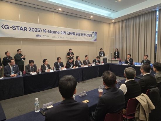 한편, 이날 간담회에 게임업계에서는 조 협회장을 비롯해 김병규 넷마블 대표, 김용대 넥슨코리아 부사장, 김재환 NHN 이사, 김태영 웹젠 대표, 박병무 엔씨소프트 공동대표, 배태근 네오위즈 대표, 성준호 스마일게이트홀딩스 대표, 원재호 앵커노드 대표, 장태석 크래프톤 부사장, 최관호 엑스엘게임즈 대표, 한상우 카카오게임즈 대표가 자리했다.