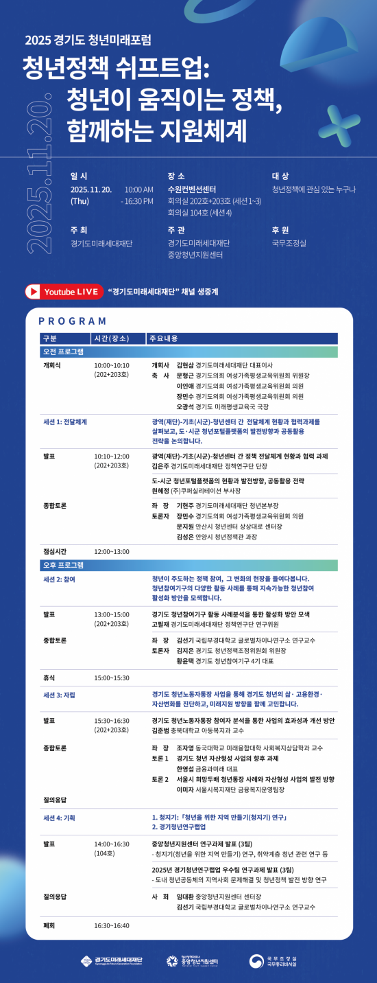 청년미래포럼은 경기미래세대재단과 중앙청년지원센터가 주관하고 국무조정실이 후원한다.