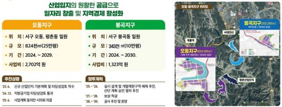 '오동지구 일반산업단지'와 '봉곡지구 일반산업단지'는 산업 여건의 변화로 증가하는 산업수요에 대처하기 위해 2024년부터 2030년까지 서남부 일원의 개발 가능 지역에 산업단지를 조성해 지역경제 활성화와 일자리 창출을 위해 추진하는 대전시의 주요 핵심사업이다.