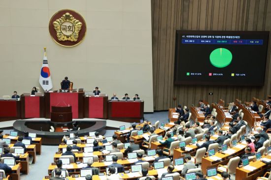 국회는 이날 본회의를 열어 석유화학 특별법을 재석 240명 중 찬성 235명, 반대 1명, 기권 4명으로 가결했다.