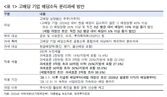 다만 분리과세 대상 기업은 다소 빡빡해졌다. 직전 3년 평균 대비 배당금 5% 증가 기업에서 10%로 조건이 높아졌다.