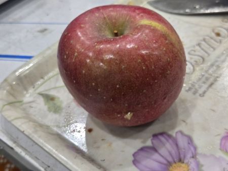 상자에 담긴 사과는 본격인 선별작업 전 세척 작업을 거친다. 선별라인에 사과를 넣기 위해 딱딱한 바닥에 쏟는 경우 상처가 생길 수 있기 때문에 물과 식용 베이킹소다가 담긴 대형 수조에 넣어 1차 세척을 한다. 이후에도 정제 소금으로 만든 전해수와 수돗물로 다시 세척을 한다. 총 세 차례의 세척 과정을 거친다.