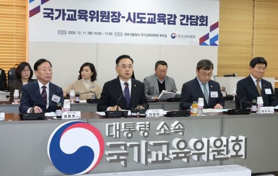 차정인 국가교육위원회 위원장이 11일 서울 종로구 정부서울청사에서 열린 시도교육감 간담회에 참석, 발언을 하고 있다.