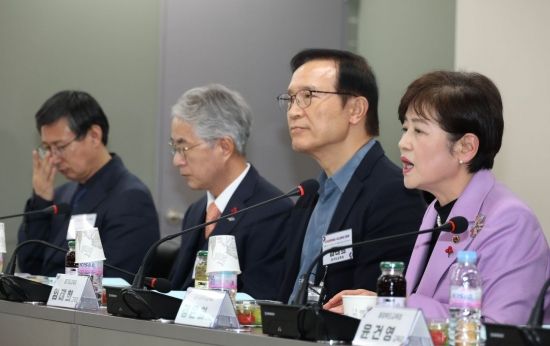 강은희 전국시도교육감협의회 회장이 11일 서울 종로구 정부서울청사에서 열린 시도교육감 간담회에 참석, 발언을 하고 있다.