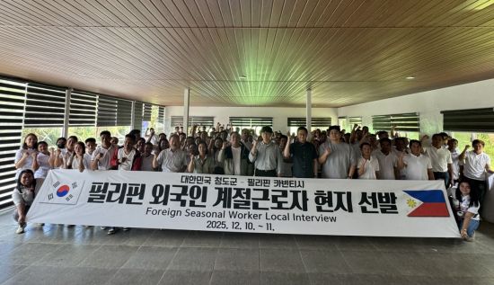 청도군(군수 김하수)은 2026년 상반기 외국인 계절근로자 도입 및 공공형 계절근로자 예비선발을 위해 필리핀 카빈티시를 직접 방문해 근로자 선발 및 교육을 10일부터 11일까지 이틀간 진행했다고 12일 밝혔다.