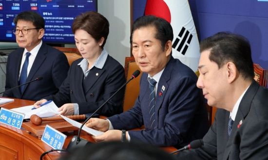정청래 더불어민주당 대표가 15일 국회에서 열린 최고위원회의에서 발언하고 있다.
