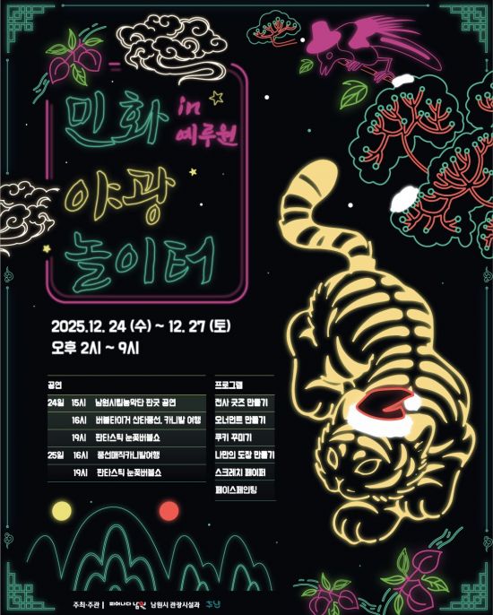 전북 남원시가 오는 24일~27일까지 4일간 예루원 마당에서 겨울철 야간 특화형 프로그램 '민화 야광 놀이터 in 예루원'을 운영한다.