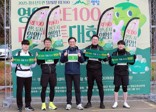 전남 영암군이 군민과 청소년이 함께 달리며 RE100 실천 의지를 다지는 이색 마라톤대회를 열었다.