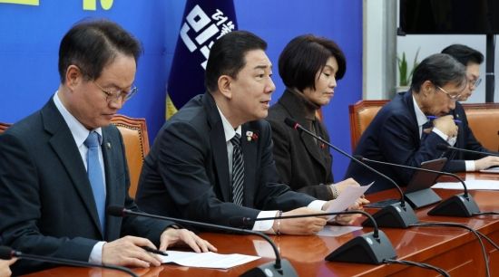 김병기 더불어민주당 원내대표가 16일 국회에서 열린 원내대책회의에서 발언하고 있다.
