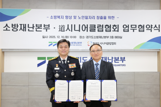 경기도소방재난본부가 경기도시니어클럽협회와 손잡고 도내 소방청사에 부족 인력을 무상 배치하는 노인일자리 협력사업을 추진한다.