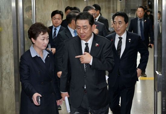김병기 더불어민주당 원내대표와 이언주 최고위원이 16일 국회에서 열린 의원총회를 마친 뒤 이동하고 있다.