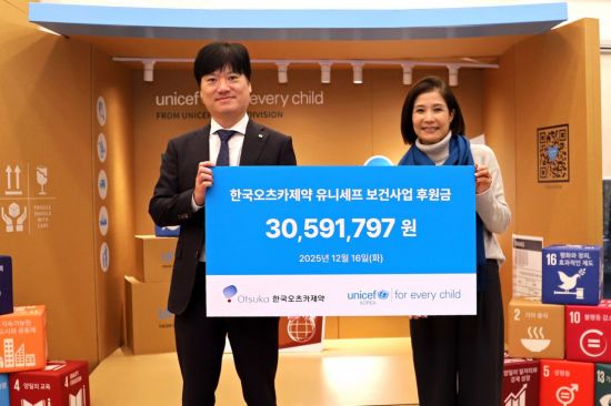 유니세프 한국위원회(회장 정갑영)는 한국오츠카제약(대표이사 문성호)이 임직원과 회사가 함께 모은 기금 3059만1797원을 기부했다고 16일 밝혔다.