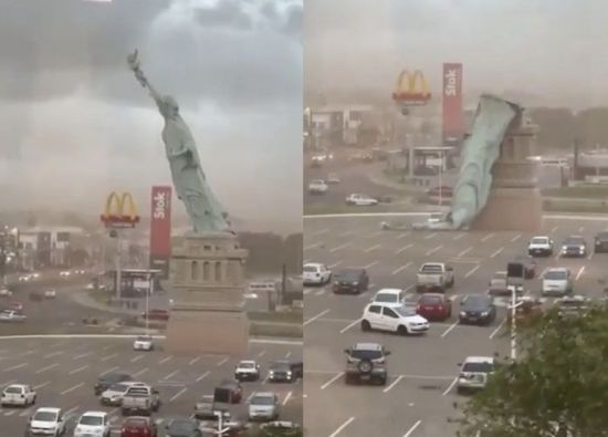 브라질 남부를 강타한 폭풍으로 24m의 '자유의 여신상' 복제품이 쓰러지는 사고가 발생했다.