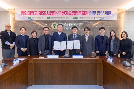 동의대학교(총장 한수환)가 지난 15일 본관 2층 회의실에서 부산기술창업투자원(원장 서종군)과 RISE사업 활성화를 위한 업무 협약을 체결했다.