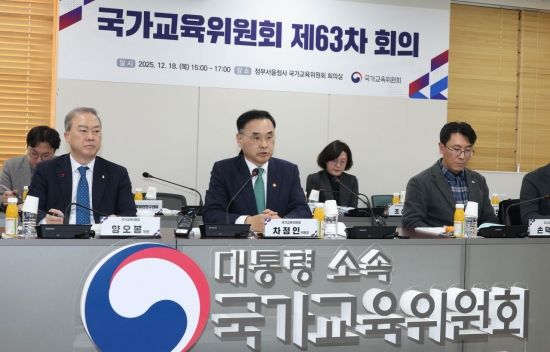 차정인 국가교육위원장이 18일 서울 종로구 정부서울청사에서 열린 제63차 전체회의에 참석, 고교학점제 등에 대해 발언하고 있다.