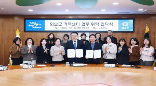 전남 화순군이 18일 군청 소회의실에서 ㈔다사랑건강가정복지협회와 화순군 가족센터 업무 위탁 협약을 체결했다.