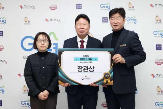 경기 가평군이 행정안전부가 주관한 '2025년 인구감소 대응 우수사례 경진대회'에서 인구감소 대응 우수 지자체로 평가받아 장관상을 수상했다.