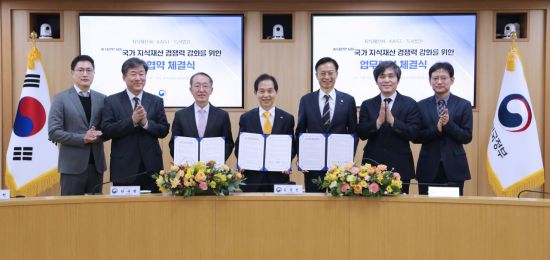 지식재산처는 19일 정부대전청사에서 KAIST, 특허법원과 디지털 및 인공지능(AI) 전환 시대 지식재산 경쟁력 강화를 위해 상호 협력하는 내용의 업무협약을 체결했다고 밝혔다.