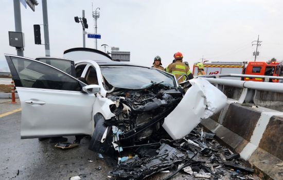 지난 20일 오후 3시 18분께 경남 거창군 거창읍 송정교차로 송정 방면에서 읍내 방면으로 주행하던 승용차가 앞 범퍼로 시멘트 중앙분리대 등 도로 시설물을 들이받았다.