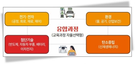 '첨단기술융합학부'는 전기전자공학과와 환경에너지학과를 기반으로, 반도체·이차전지·환경·에너지·탄소중립 분야를 아우르는 융합 교육과정을 운영한다. 산업 현장에서 즉시 활용 가능한 실무 역량을 갖춘 인재 양성을 목표로 기업에서 실제 사용하는 설비와 환경을 반영한 실습 중심 교육이 이뤄진다.