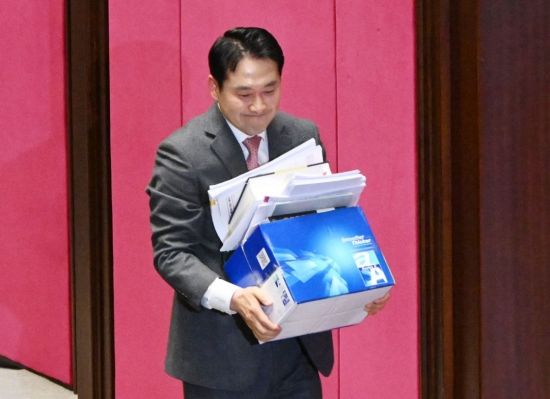 장동혁 국민의힘 대표가 23일 국회에서 열린 본회의에서 내란전담재판부 설치법에 대한 24시간의 무제한 토론을 마친 뒤 발언대에서 내려오고 있다. 사상 처음 제1야당 대표로 나선 장 대표의 무제한 토론은 역대 최장인 24시간을 기록했다.