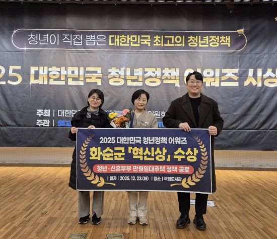 전남 화순군이 지난 23일 국회도서관 대강당에서 열린 '2025 대한민국 청년정책 어워즈'에서 청년 및 신혼부부 만원임대주택(이하 만원임대주택) 정책으로 '혁신상'을 수상했다.