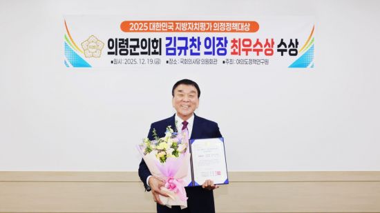 김규찬 의장은 "이번 수상은 제 개인이 아니라 의령군의회를 믿고 지지해 주신 군민 여러분과 함께 만들어 온 결과"라며 "군민의 삶 속에서 문제를 찾고, 이를 조례와 정책으로 풀어내는 지방의원을 계속해서 목표로 삼겠다"고 말했다.