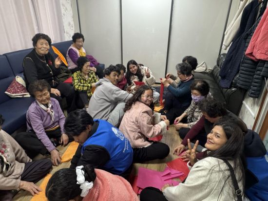 어르신들은 생소한 이국 음식을 맛보며 학생들의 고향 이야기에 귀를 기울였고, 일부 어르신들은 감사의 마음을 담아 직접 춤을 선보이는 등 경로당 안은 시종일관 화기애애한 분위기가 이어졌다.
