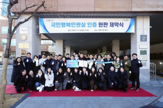 서울 성북구가 행정안전부 주관 2025년 국민행복민원실 신규 인증기관으로 선정돼 지난 26일 인증 현판 제막식을 가졌다고 28일 밝혔다. 인증 유효기간은 3년이며, 제막식에는 이승로 성북구청장과 성북구의회 의원, 공직자, 주민 등 100여명이 참여했다.