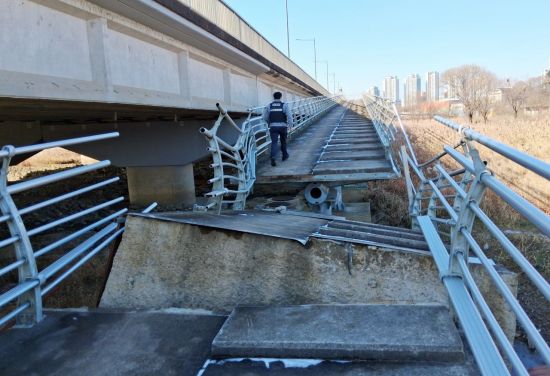 무너진 구간은 보행로를 잇는 연결 램프가 파손된 것으로 추정된다.