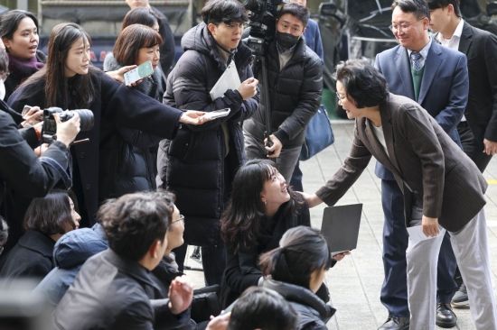이혜훈 기획예산처 장관 후보자가 29일 서울 중구 예금보험공사에 마련된 인사청문회 준비 사무실로 출근하며 입장을 밝힌 뒤 취재진에게 질문 받고 있다.